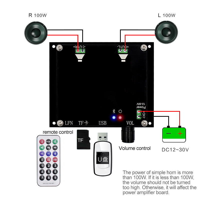 Audio input: bluetooth 5.0, TF card, USB flash disk